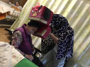職員が手作りの獅子舞を被り、各フロアを訪問しました。