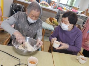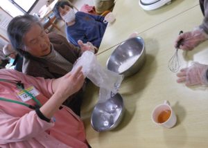 手作りおやつを行う月もあり、皆様楽しく参加されています。女性の出番!!