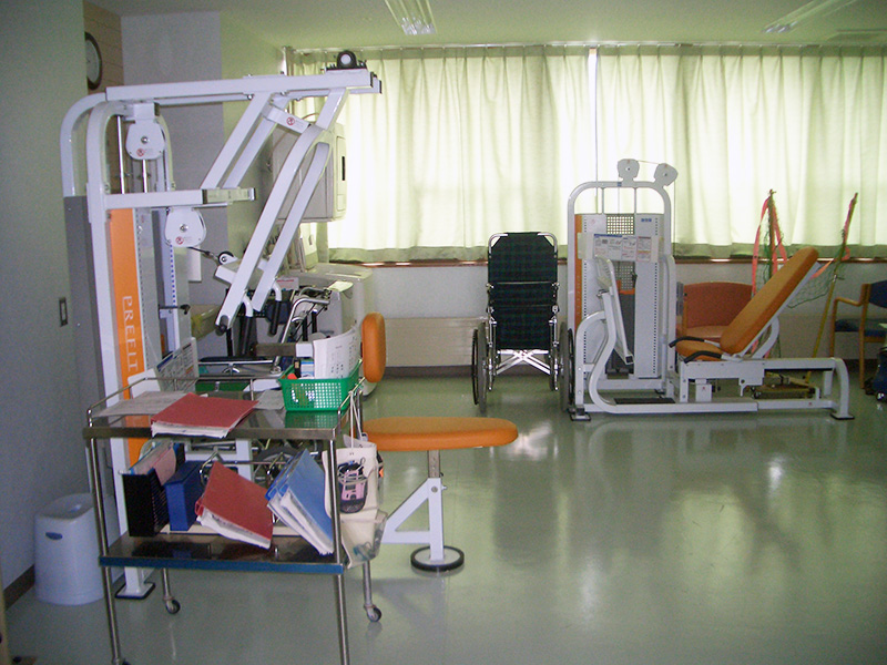 マシンによる上下肢筋力トレーニングを行います。職員が側で無理しないよう指導します。
