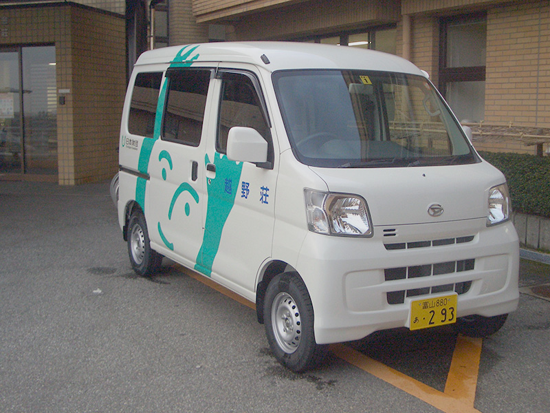 軽自動車の送迎車、車椅子が一台後部に入ります。小回り、機動性を生かします。